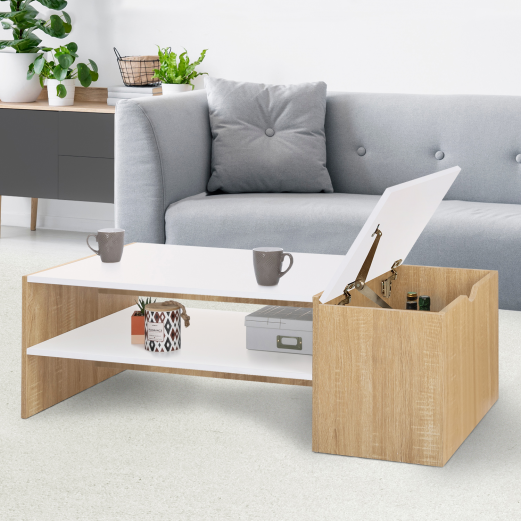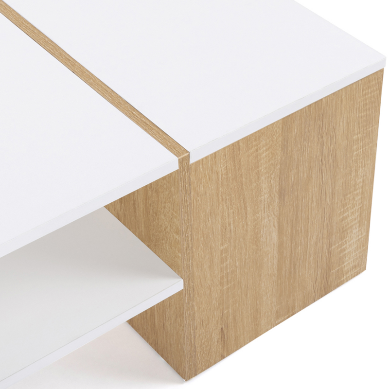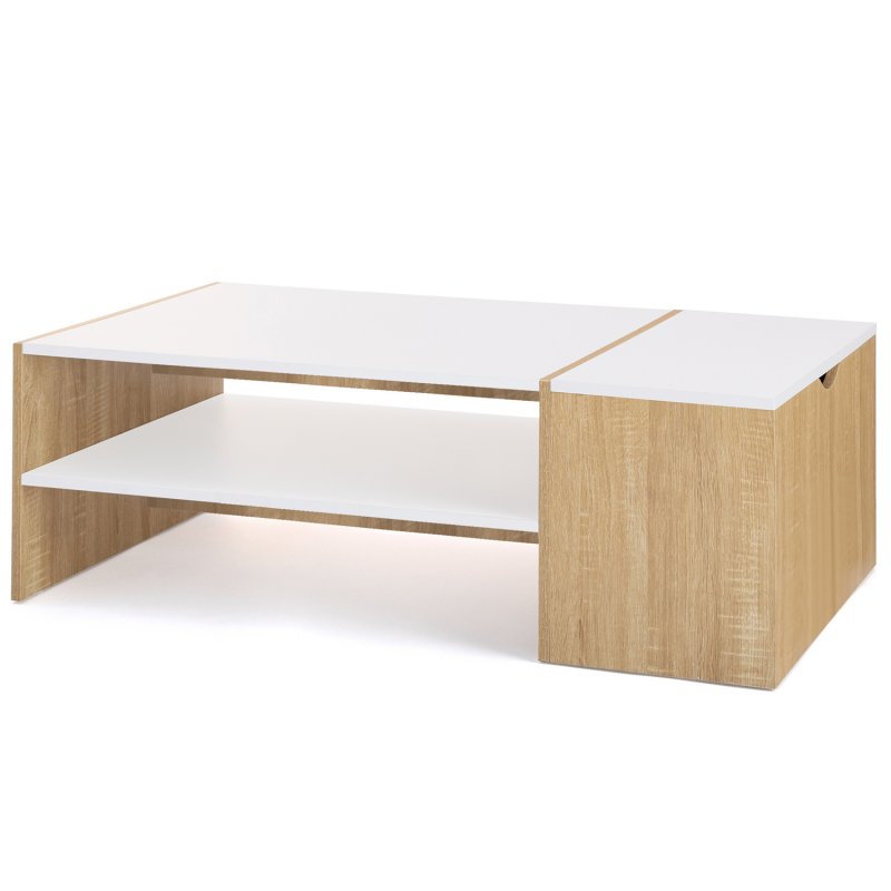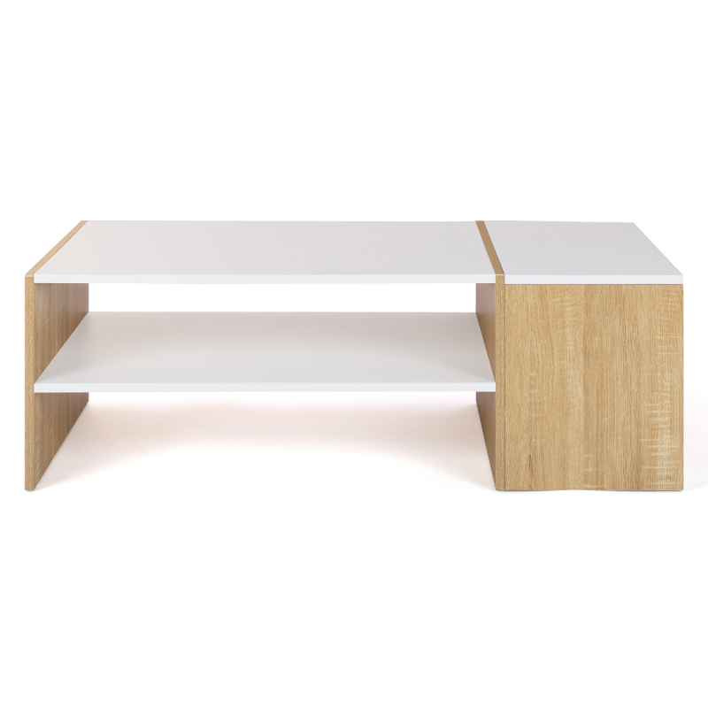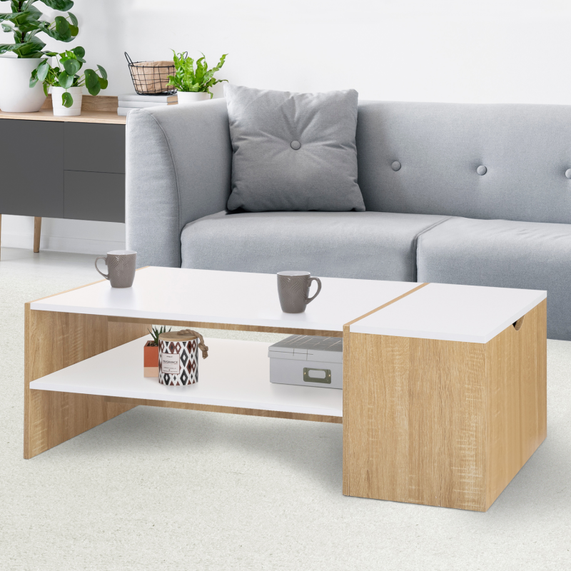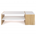 Table basse avec rangement bar 110 cm bois imitation hêtre et blanc